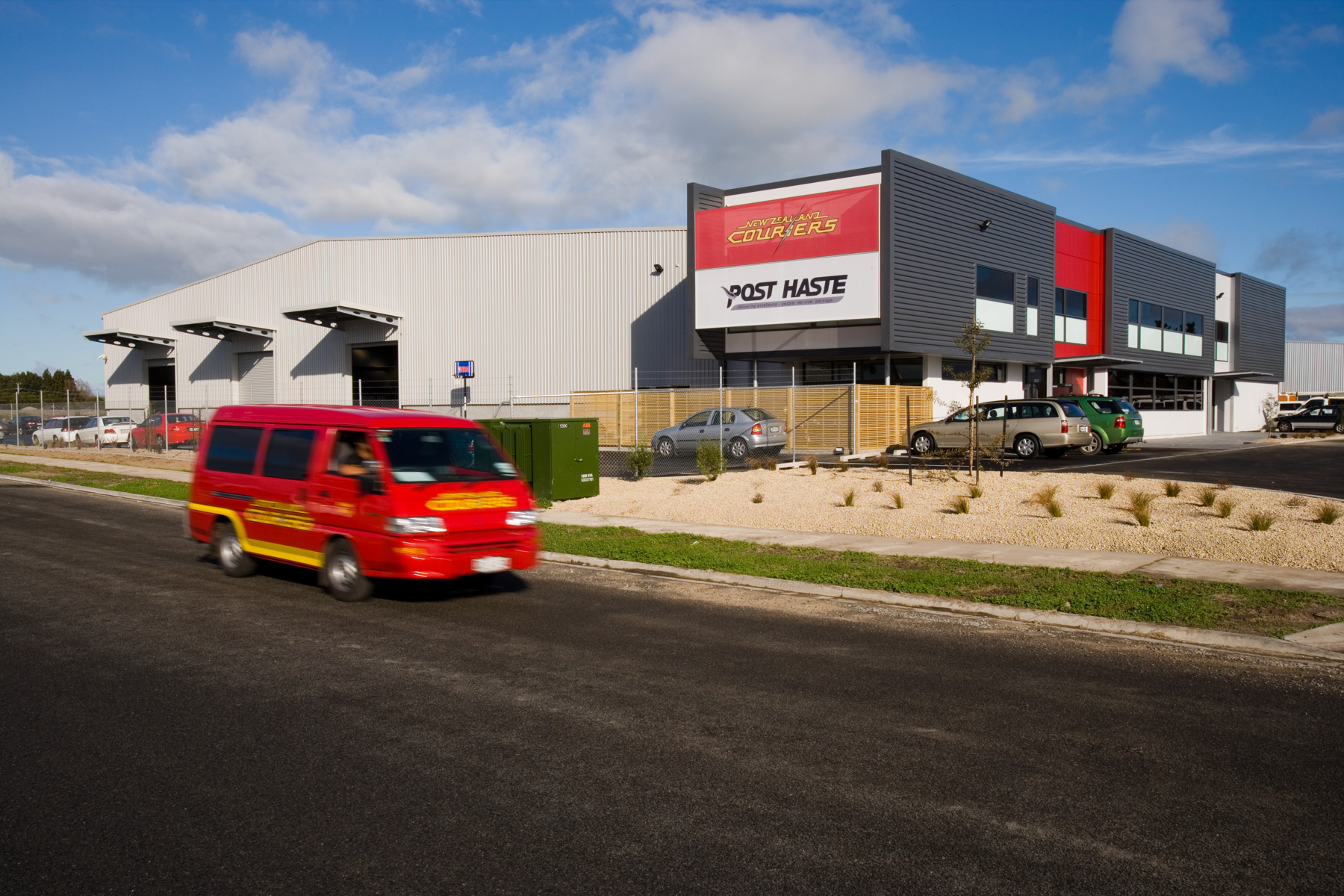 The building has been designed to accommodate business growth with a movable wall that allows the flexibility to increase sorting space by 330m². The office component of the facility underwent a complex design phase to incorporate all of the client's various operational requirements and includes a high spec fit-out and an intricate telecommunications and computer hub. Joint venture partner Perry Developments General Manager, Tony McLauchlan, describes the Freightways' building as a truly unique commercial facility. Freightways’ requirements presented a real planning challenge for our team and the end result in a one-of-a-kind commercial building.